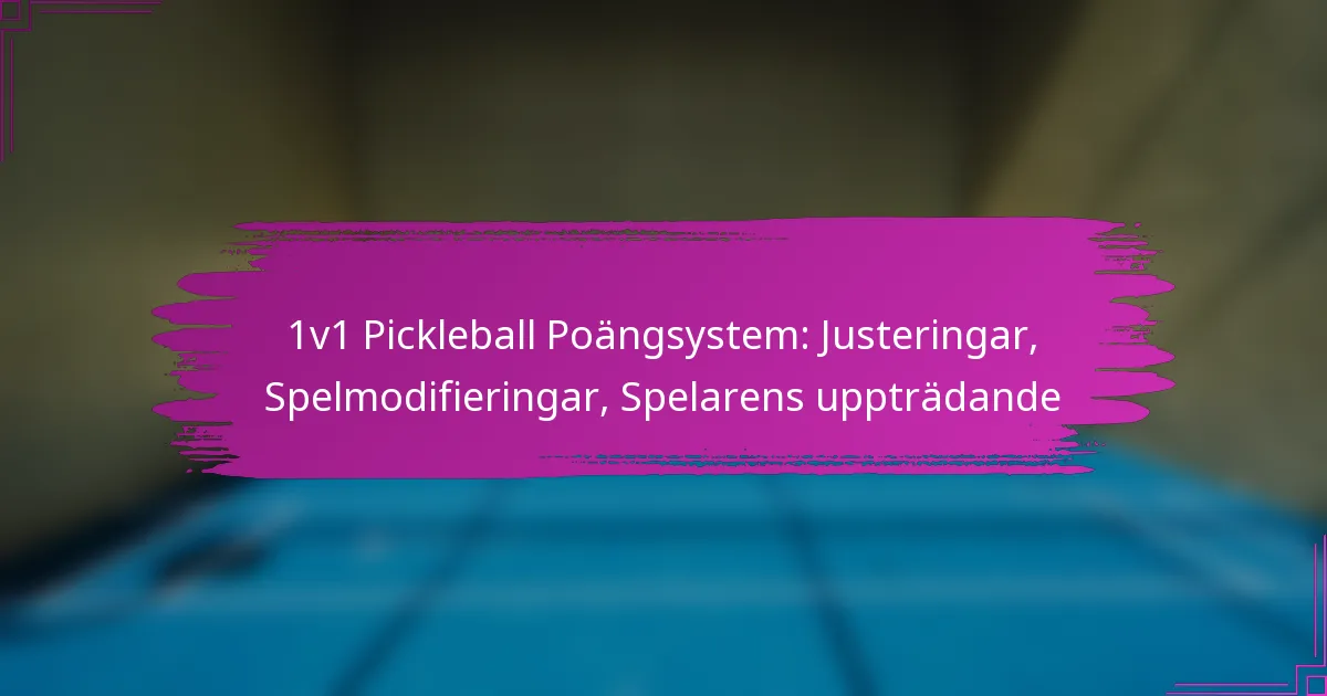 I 1v1 pickleball är poängsystemet utformat för att vara enkelt och engagerande, vanligtvis med ett rally-poängsystem som gör att antingen spelare kan göra poäng oavsett vem som servar. Justeringar av poängsystemet kan förbättra spelet och anpassa sig till olika färdighetsnivåer, medan förståelse för spelarnas uppträdande är avgörande för att främja en respektfull och trevlig atmosfär på banan.